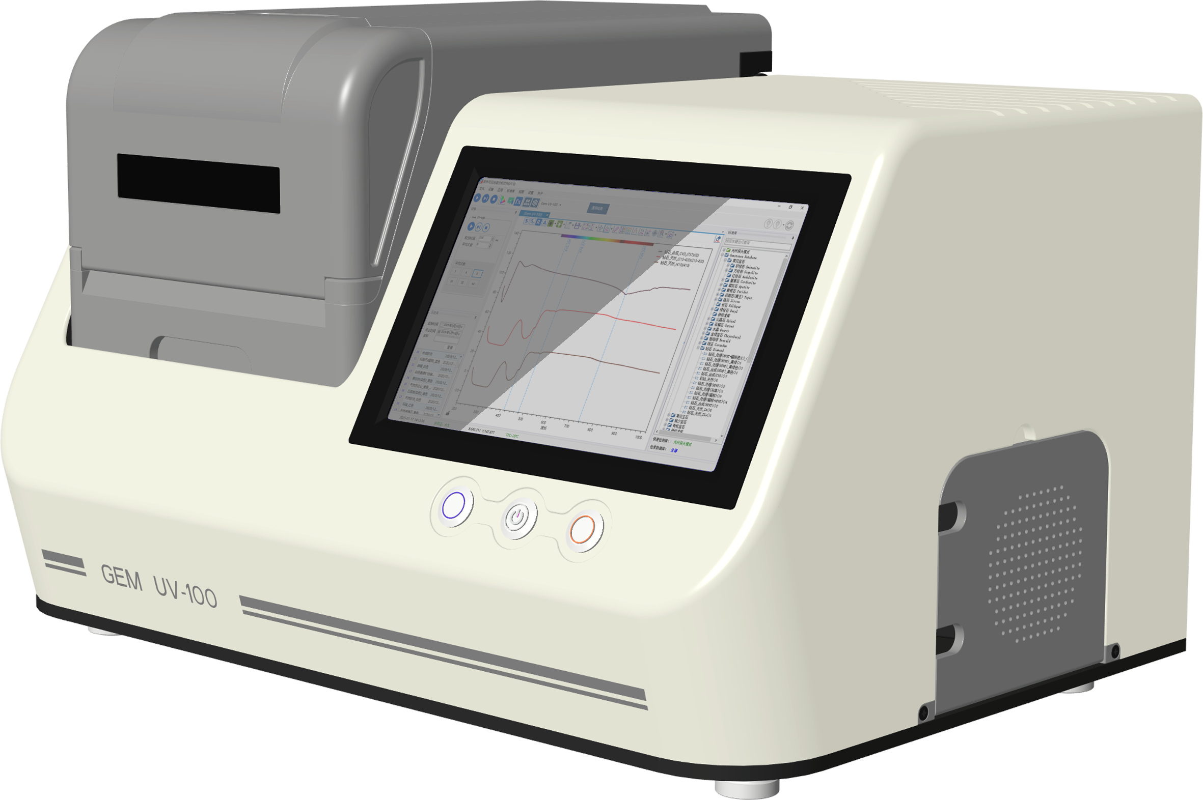 仪器基于光谱测量原理,利用不同宝玉石材料在紫外-可见-近红外波段的吸收特征,对宝玉石种属、成因、及优化处理特征进行快速、无损检测。